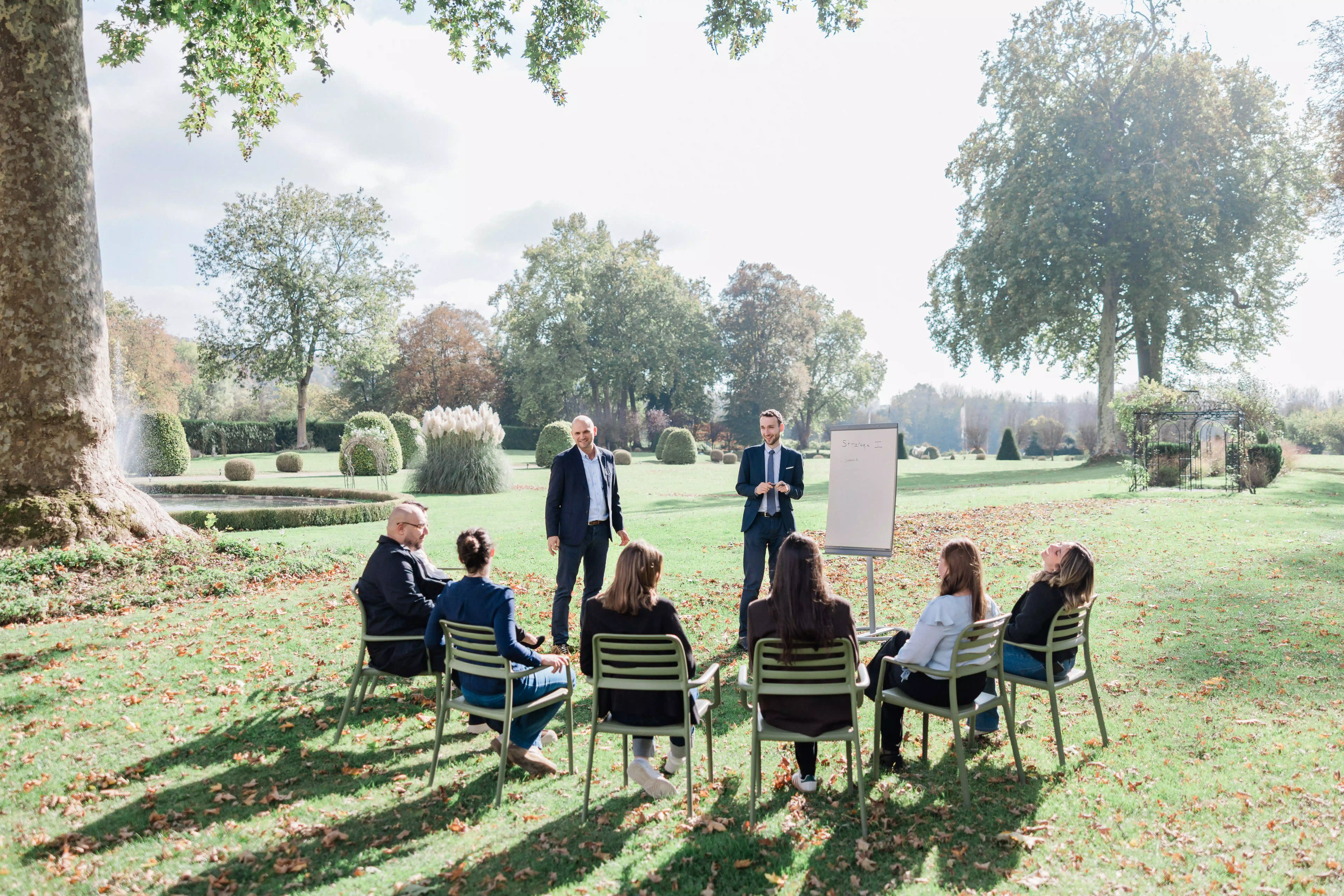 Notre domaine, entièrement privatisable, offre un magnifique parc verdoyant pour vos activités de team building, des salles de réunion équipées, plusieurs salons, une grande galerie de réception climatisée dans le château, unique en son genre, et des chambres de charme et confortables pour une détente absolue. Optez pour une expérience unique en "tout compris", comprend tous nos espaces, pauses, restauration, nuitées etc... Alliez travail et bien-être, et faites de votre événement d'entreprise un succès.