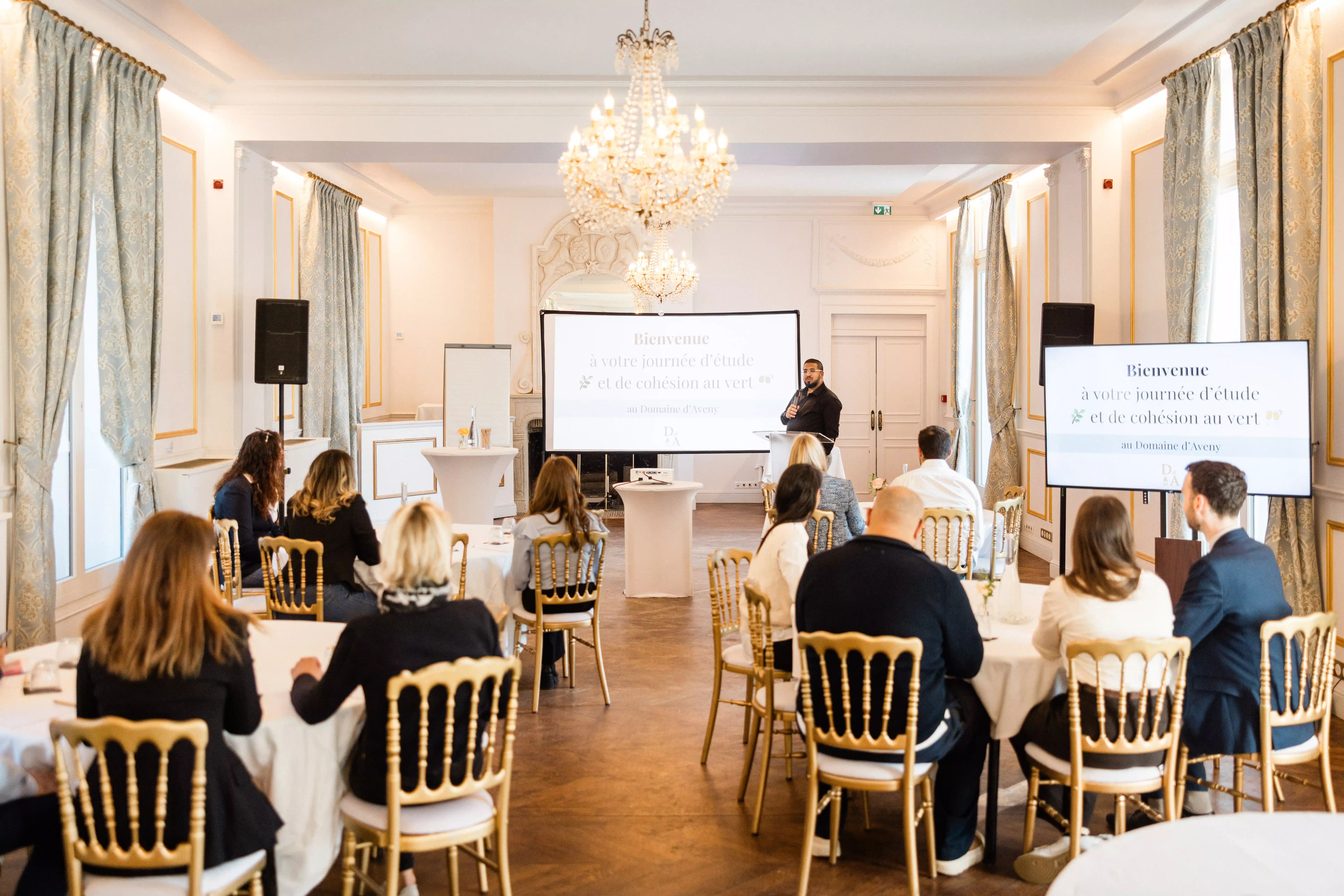 Le Château d'Aveny dans le Vexin, proche de Paris, est niché dans les collines normandes, offrant une vie de château contemporaine pour vos cocktails d'entreprise, séminaires et team buildings. De grands espaces, variés, pour une expérience d'entreprise inoubliable !