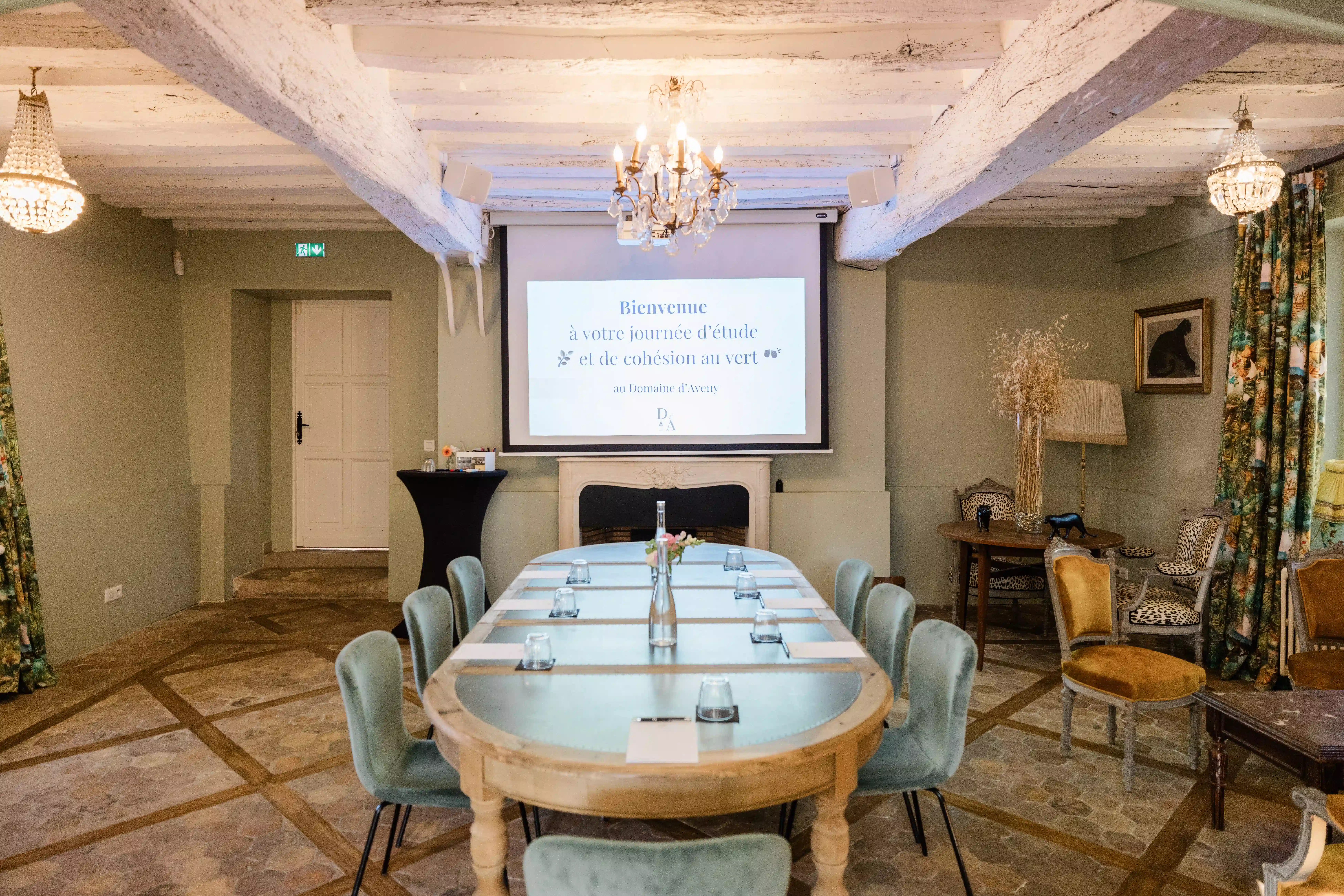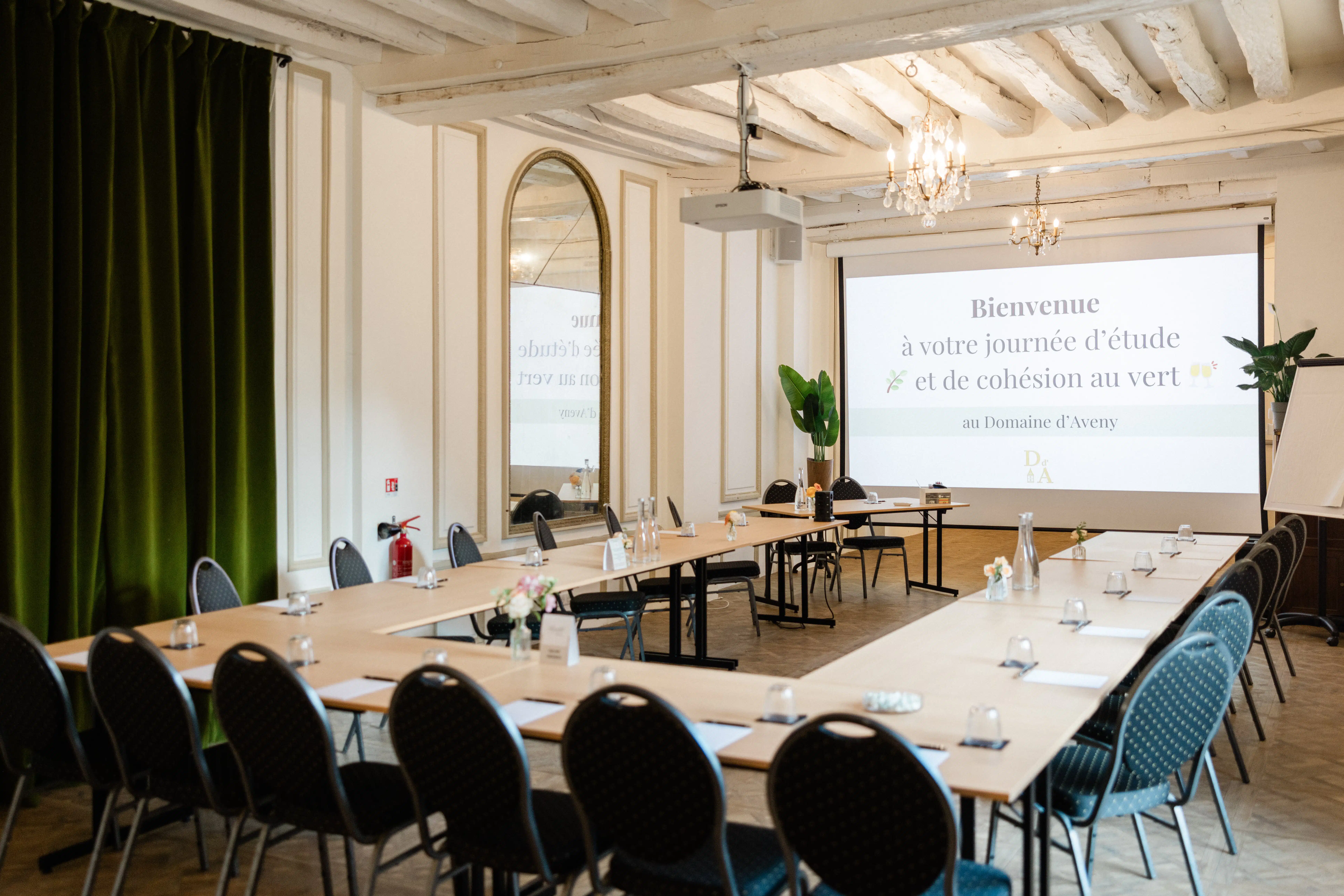 Le domaine d'Aveny met à votre disposition 6 salles de réunion ou détente dont une galerie de réception climatisée pour accueillir les plénières jusqu'à 220 personnes, et une grande terrasse.