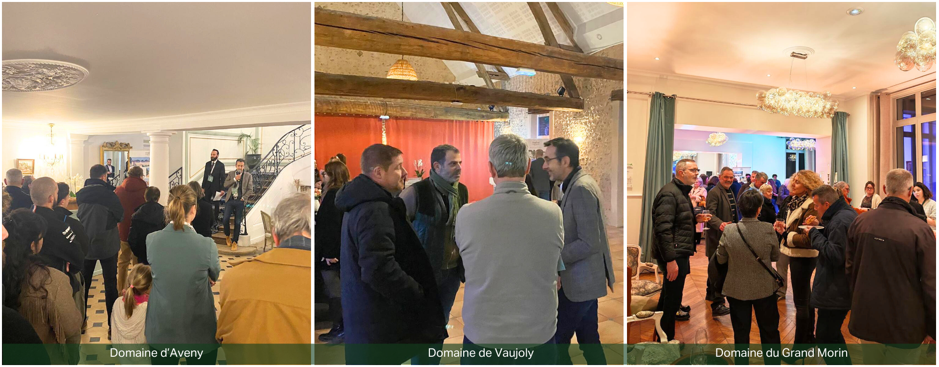 En janvier, Domaines & événements a organisé trois afterworks “Galette & Pots des Voisins” dans ses domaines d’Aveny, de Vaujoly et du Grand Morin. Des moments de partage et de découverte, réunissant près de 160 participants autour de visites, d’échanges et de gourmandise.